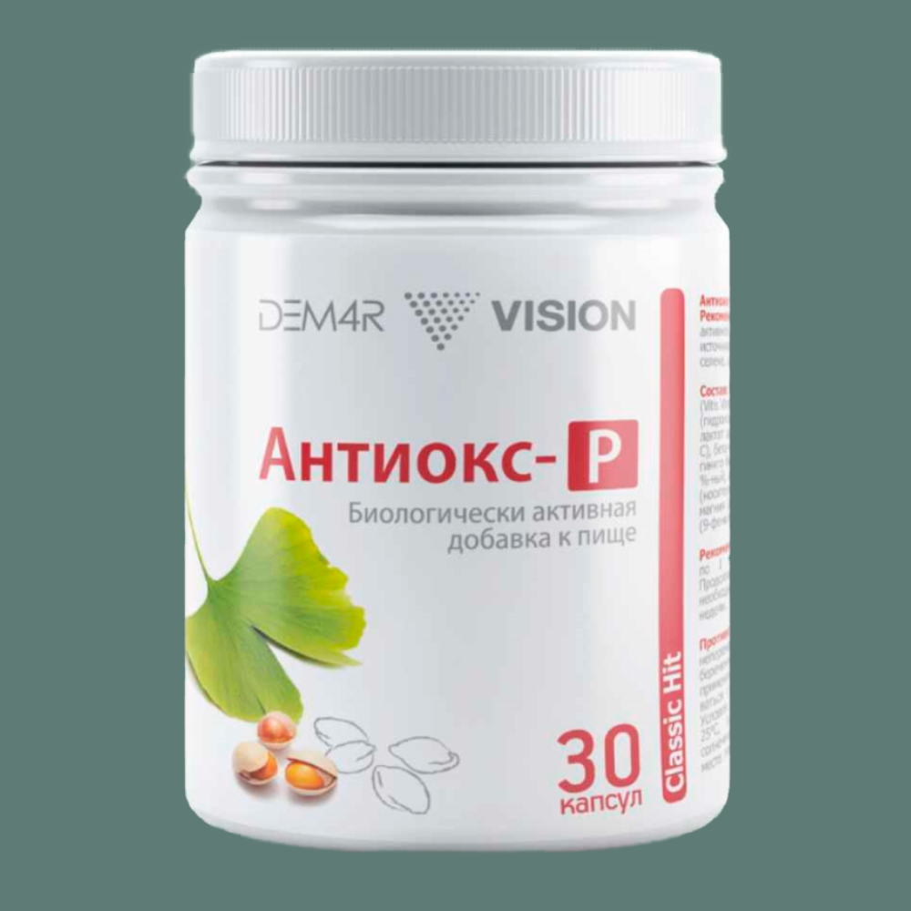 Антиокс-Р Vision защищает от свободных радикалов, замедляет процессы старения, регулирует работу сердца, укрепляет капилляры и стенки сосудов.